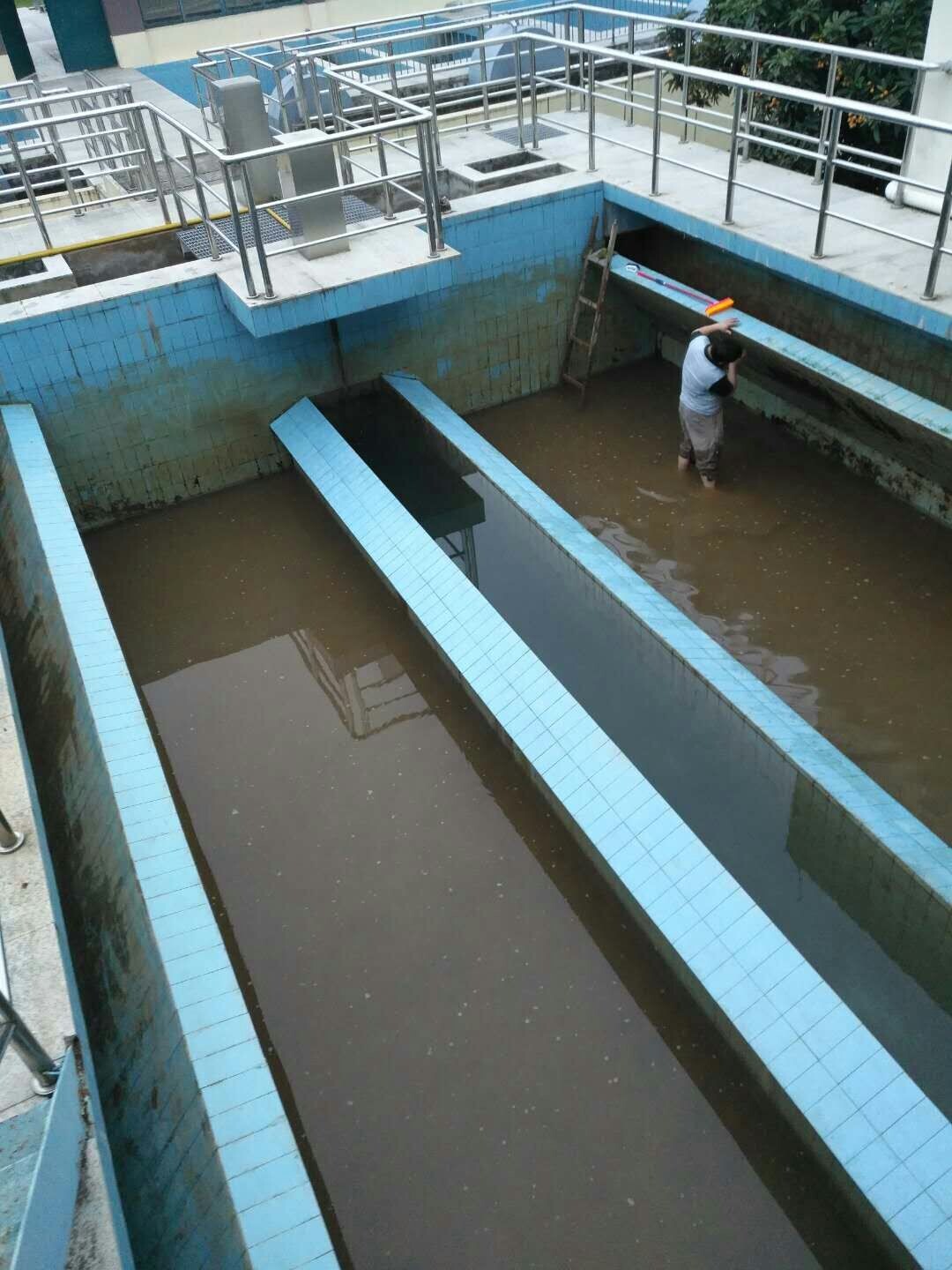 水廠濾池由于長時間不間斷運行,給出水帶來污染。在為期2天的清洗工作中,工作人員在濾池中認真鏟刮、清掃、沖洗濾池內(nèi)壁殘留不少淤泥、雜質、青苔,清理過的濾池內(nèi)壁煥然一新。