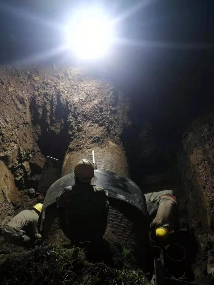 節(jié)假日的堅(jiān)守,只為保障居民正常用水?!拔逡弧毙¢L(zhǎng)假期間,安裝公司施工團(tuán)隊(duì)放棄與家人的團(tuán)聚,默默堅(jiān)守在施工一線,用自己的實(shí)際行動(dòng)確保了荊門城區(qū)的居民正常用水安全。5月1日晚21:00,經(jīng)過(guò)割接施工方案優(yōu)化,物資儲(chǔ)備等一系列前期準(zhǔn)備后,DN1200源水管線管網(wǎng)開(kāi)始降水,搶口工作正式開(kāi)始,經(jīng)過(guò)近5個(gè)小時(shí)的精心施工后,5月2日凌晨3時(shí)左右,隨著最后一塊開(kāi)孔封蓋焊接結(jié)束,DN1200源水管線搶扣工作正式宣告完成。