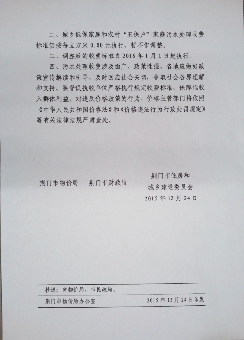關(guān)于調(diào)整城區(qū)污水處理收費(fèi)標(biāo)準(zhǔn)的通知