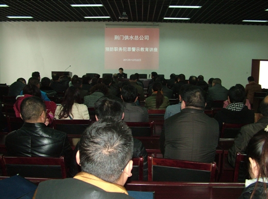 圖為東寶區(qū)檢察院副檢察長(zhǎng)趙龍進(jìn)行“預(yù)防職務(wù)犯罪法律講座”的場(chǎng)景。