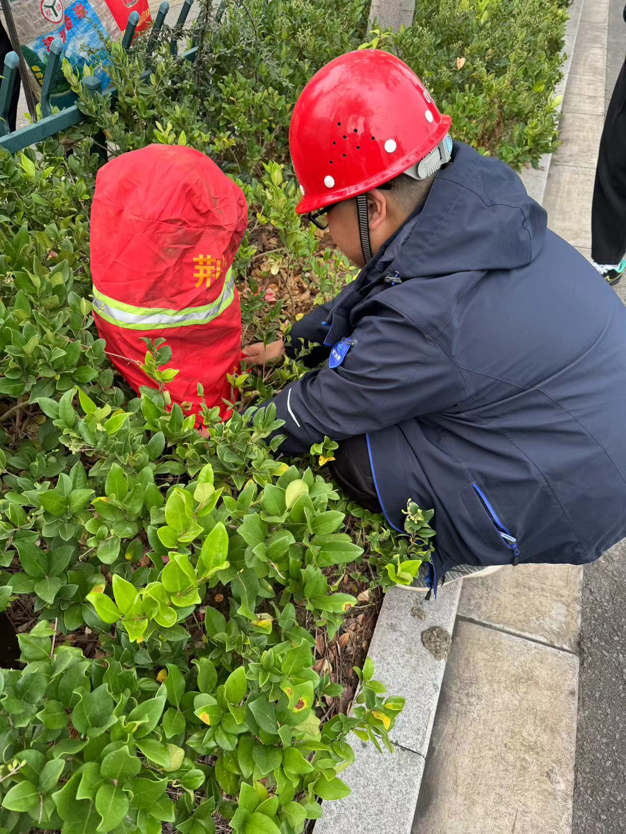 圖為巡檢人員為消防栓套保溫罩