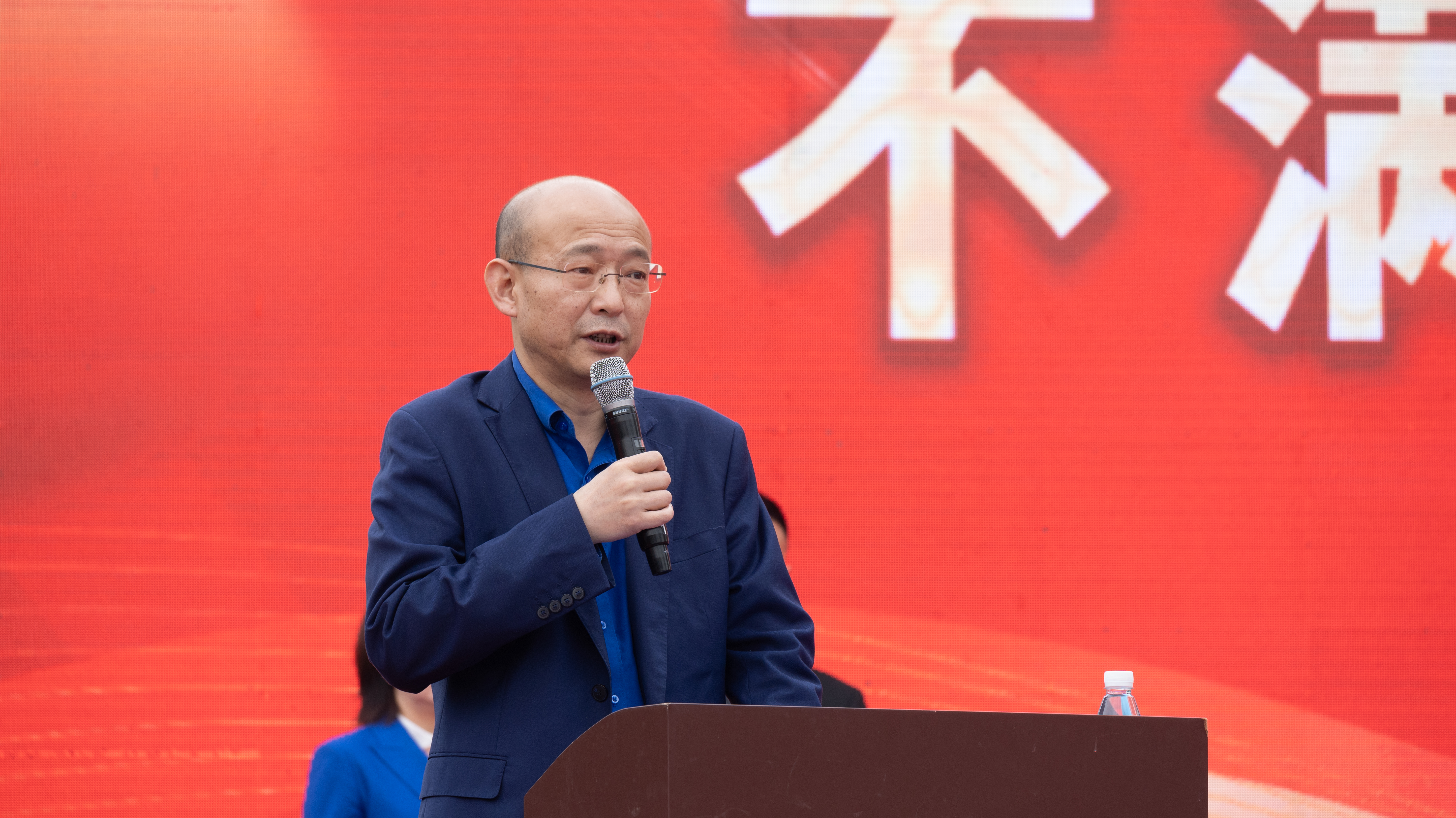 圖為荊門市城市水務集團有限公司黨委書記、董事長陳永根作總結報告