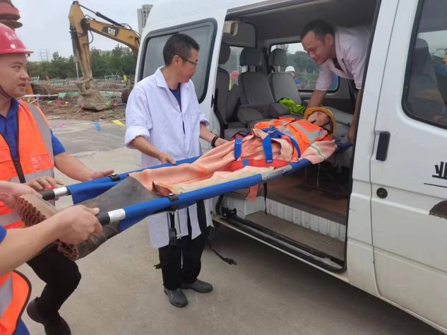 本次演練結(jié)合現(xiàn)場實際情況,生動模擬了施工過程中“因突發(fā)雙排腳手架倒塌導(dǎo)致作業(yè)人員墜落并被擠壓”的緊急情況。所有參與人員嚴(yán)格按照崗位職責(zé),高效完成了從發(fā)現(xiàn)上報、應(yīng)急響應(yīng)、現(xiàn)場指揮、警戒設(shè)立、搶險救援到醫(yī)療救護等一系列應(yīng)急處置流程。各方協(xié)同聯(lián)動,僅用15分鐘即完成演練任務(wù),達(dá)到預(yù)期效果。