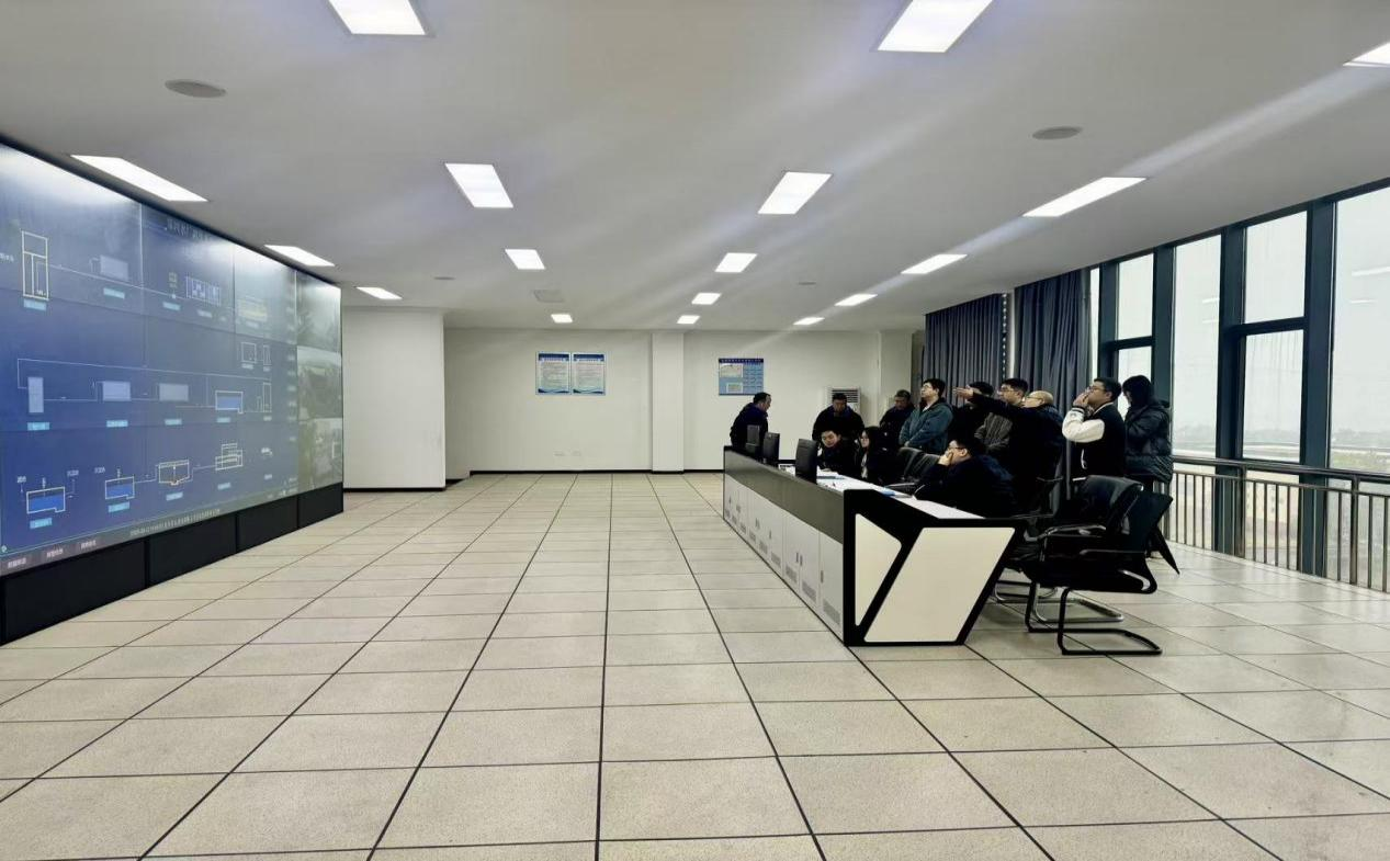 考察團分赴集團調(diào)度指揮中心與四水廠。在調(diào)度指揮中心,實地察看智慧水務平臺運行成效,圍繞供水全網(wǎng)監(jiān)測、智能調(diào)度等技術(shù)與管理難點深入交流。在四水廠,重點察看生產(chǎn)工藝、自動化設備及節(jié)能降碳設施,聚焦次氯酸鈉制備環(huán)節(jié)的能耗控制、安全運維與成本管控。