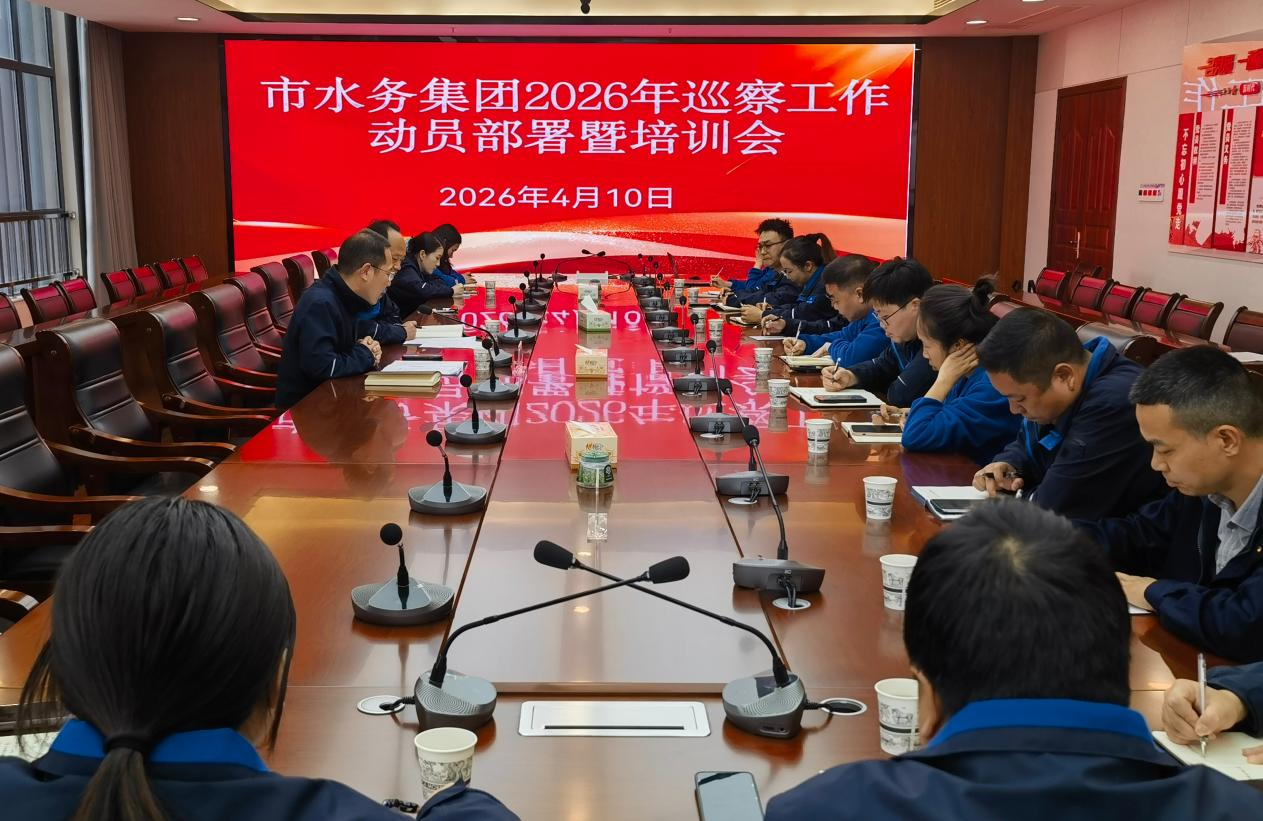 4月10日下午,市水務(wù)集團組織召開2026年巡察工作動員部署暨培訓(xùn)會,深入學(xué)習(xí)貫徹習(xí)近平總書記關(guān)于巡視工作的重要論述,全面落實黨中央和省委、市委關(guān)于巡視巡察工作的新部署、新要求,以更高標(biāo)準(zhǔn)、更嚴要求開啟新一輪內(nèi)部巡察。市紀(jì)委監(jiān)委派駐水務(wù)集團紀(jì)檢監(jiān)察組組長、集團黨委委員、紀(jì)委書記劉高軼主持會議并講話。集團各巡察小組、紀(jì)委辦全員參加會議。