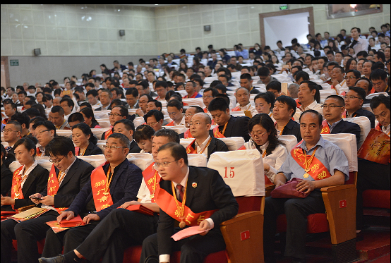 荊門市勞動(dòng)模范、供水總公司黨委書記、總經(jīng)理陳永根(二排右三)在會(huì)議現(xiàn)場(chǎng)