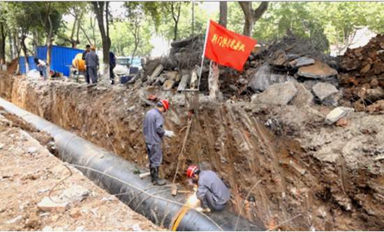 四條道路供水管線遷改工程時間緊、任務(wù)重,且施工難度大。由于道路施工工期緊張,施工單位都在全力趕工期,因此5月后進入到管線遷改工作的白熱化階段。維修處全體干部職工充滿信心,全力以赴,不辱使命,挑戰(zhàn)自我。全體施工人員克服重重困難,采取“白+黑”、“5+2”連軸轉(zhuǎn)不停歇的工作模式,加班加點,在保證安全質(zhì)量的前提下,加快施工進度,確保四條道路管道遷移改造工作快速推進,圓滿完成總公司和工程建設(shè)指揮部下達的各項工作任務(wù)。