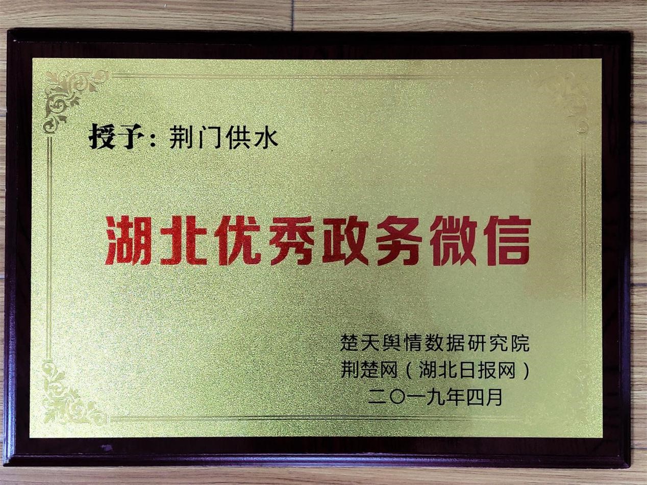 “荊門供水”榮獲“全省優(yōu)秀政務微信公眾號”稱號