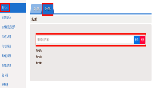 2.點(diǎn)擊“用戶中心”,選擇“表卡信息”,輸入10位數(shù)字用戶編號(hào)點(diǎn)擊“綁定。”